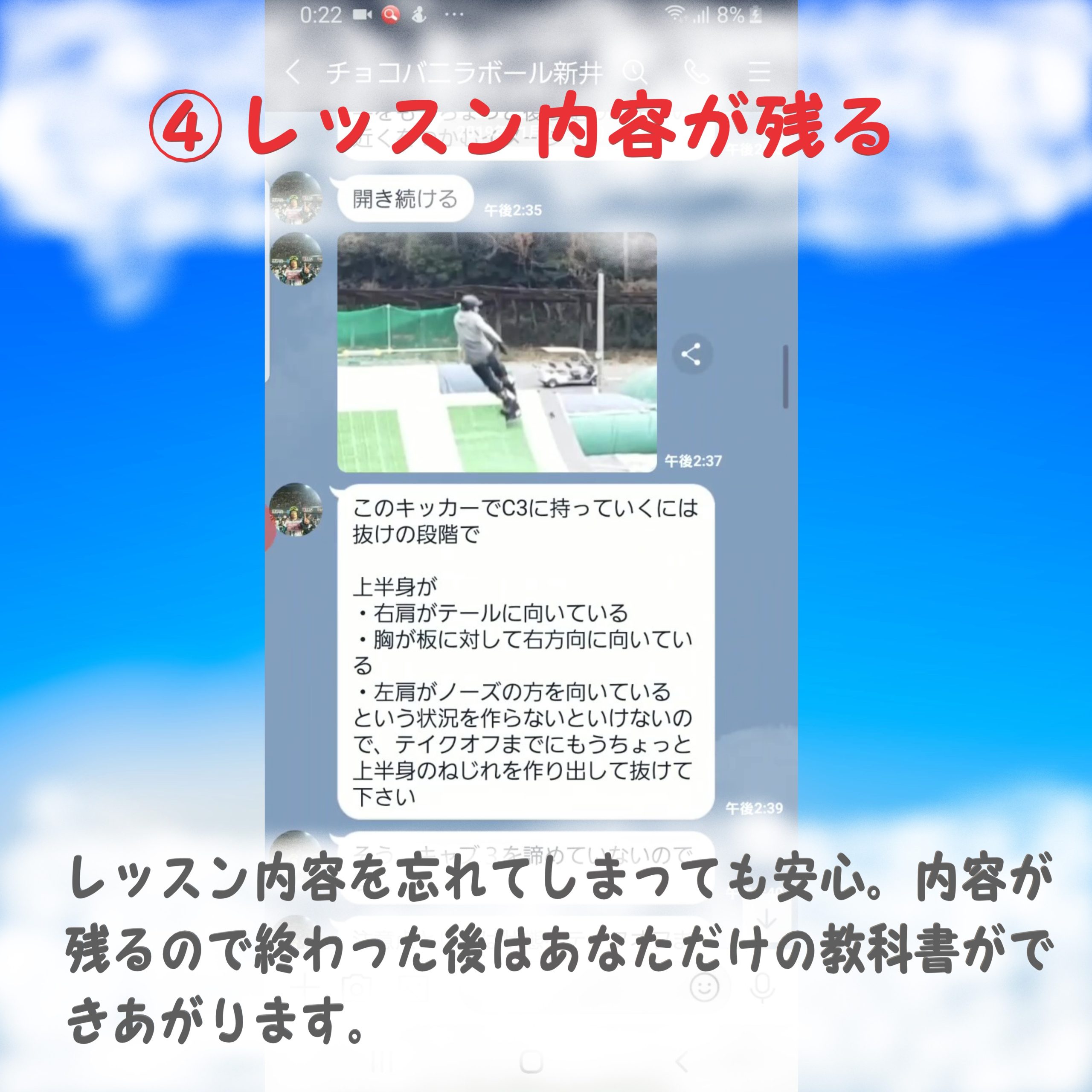 ※アフターケアレッスン1ヶ月は1日1トリックまでのサービスです。