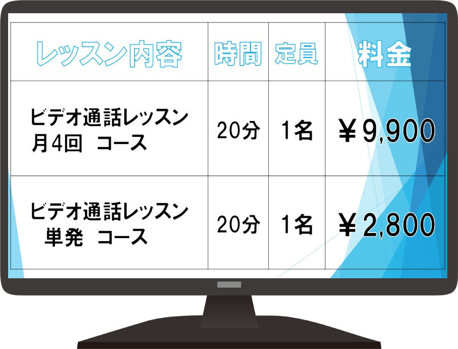 ※ビデオ通話レッスンはアフターケアレッスンのみのご提供となります。